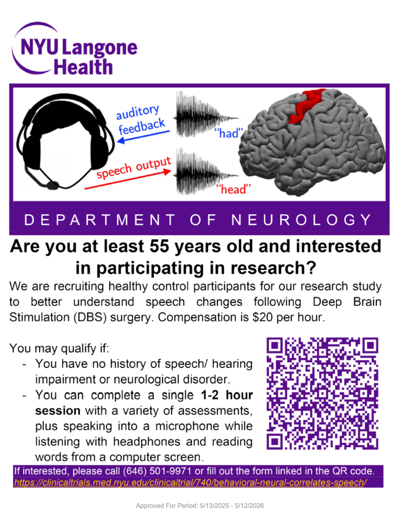 https://clinicaltrials.med.nyu.edu/clinicaltrial/740/behavioral-neural-correlates-speech/