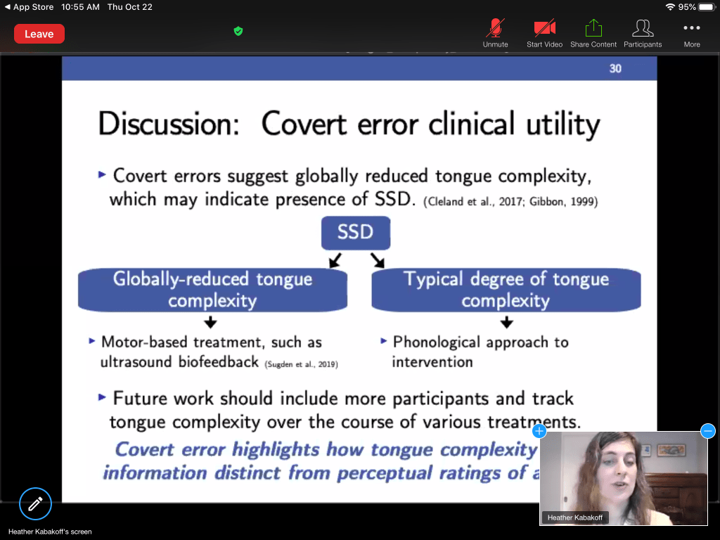 Ayala, S., Eads, A., Kabakoff, H., Preston, J.L., Hitchcock, E., & McAllister, T. (June 10, 2022). Auditory and somatosensory abilities of children with and without residual speech sound disorder. Poster presented at the International Child Phonology Conference, West Lafayette, IN.
