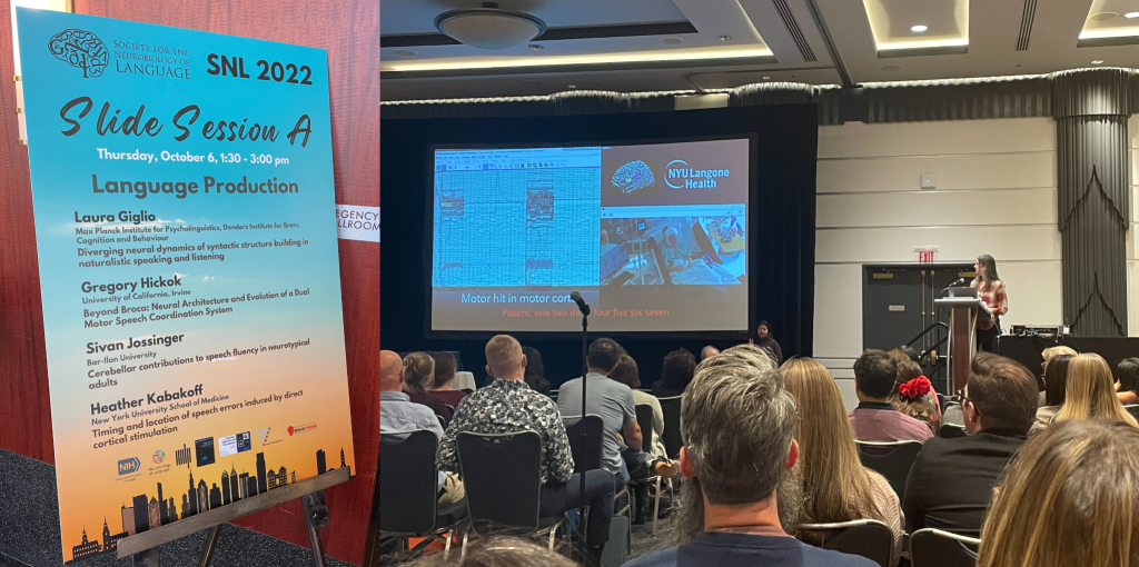 Kabakoff, H., Yu, L., Friedman, D., Dugan, P., Doyle, W., Devinsky, O., & Flinker, A. (October 6, 2022, Meritorious Postdoctoral Submission). Timing and location of speech errors induced by direct cortical stimulation. Talk presented at the Society for the Neurobiology of Language Annual Meeting. Philadelphia, PA.